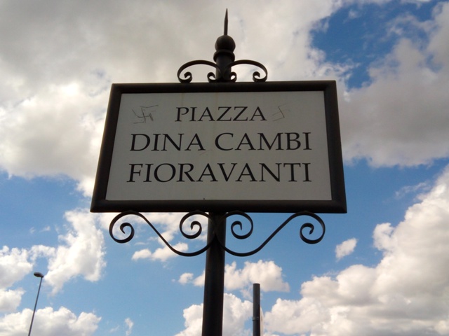 Ero arrivata di corsa, ero in ritardo, ho parcheggiato a pochi passi da quella targa senza guardarla. Al ritorno no, mi son fermata a salutarla, ed è stato lì che ho visto quelle svastiche. La targa è alta, bisogna arrampicarsi su una piccola ringhiera che dà proprio sulla strada principale per arrivarci. Abbiamo controllato, sono state incise nel marmo.