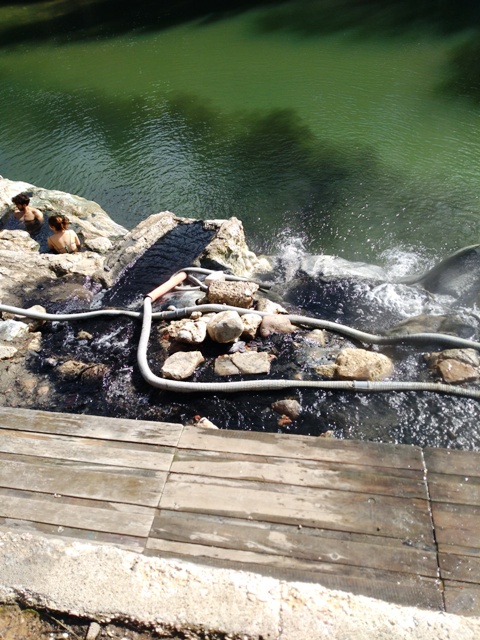 - L'ACQUA NON È BALNEABILE, non perché sia certamente pericolosa ma proprio perché non si sa la sua composizione. Chiunque, di competenza certificata, presentatosi a fare i prelievi di acqua e di campioni vari inerenti il fenomeno e chiunque presentatosi, di competenza certificata, a studiare il fenomeno è giunto ad un preliminare preoccupante ma non definitivo, ossia che la sostanza, minerale o qualunque cosa sia disciolta nell'acqua termale, risulta incolore al prelievo e diventa scuro successivamente, sicuramente reagendo alla luce e all'aria ma anche, probabilmente, ad altri elementi come il calcare delle vasche; non è una sostanza immediatamente riconoscibile, non è detto che nelle 24 ore dal prelievo si riesca a determinare cosa sia e neanche a fare una ipotesi; non è, con quasi certezza assoluta, quella che viene chiamata volgarmente "fuliggine termale", ossia quella materia scura, a volte nerastra, che abbiamo sempre visto fuoriuscire nel tempo in piccole dosi dal tubo che rifornisce le vasche e che si presenta frequentemente nella fonte termale alla base del bastione sul ponte. Fin quando non ci saranno risposte certe non si può balneare lì.