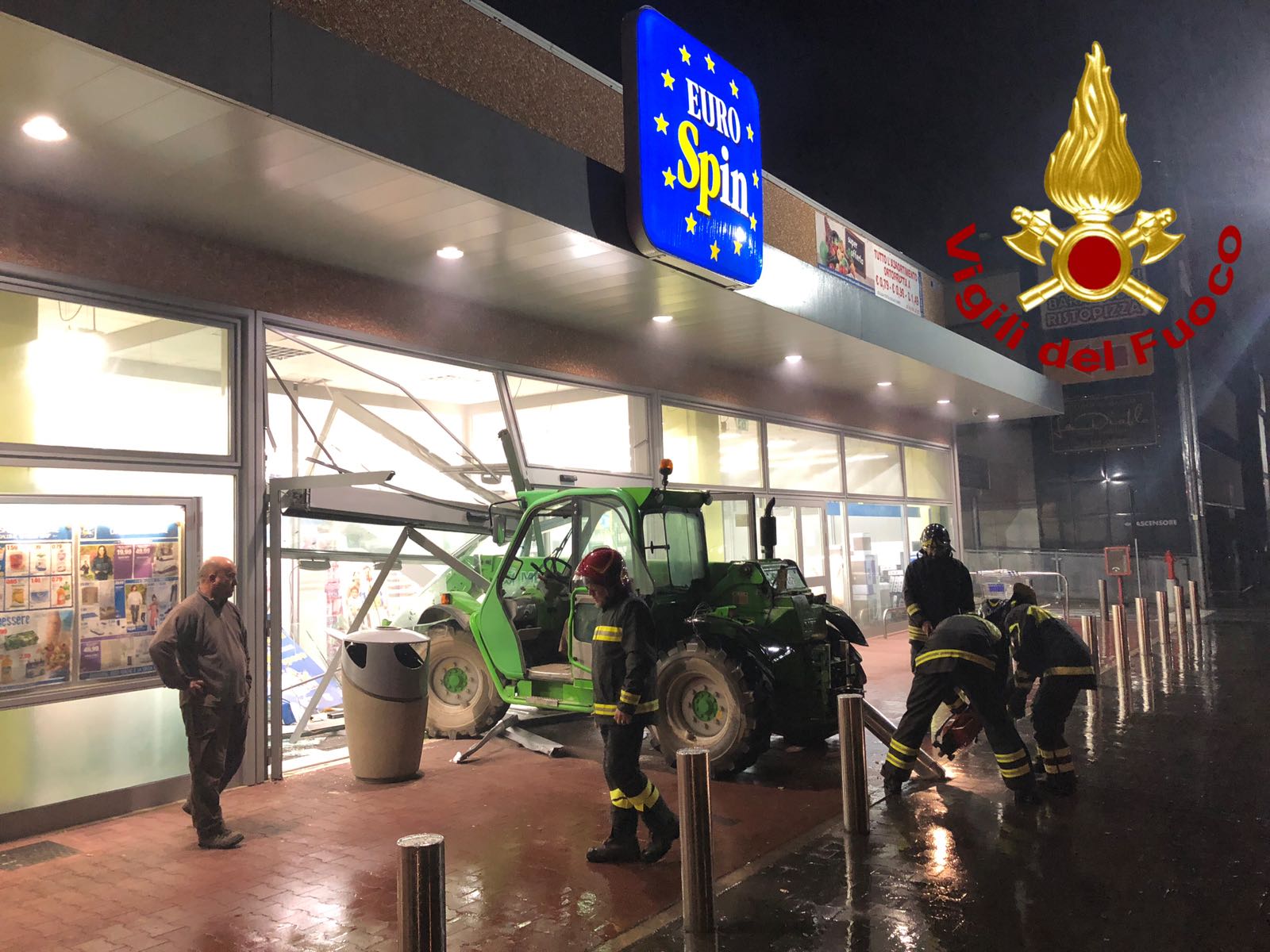 Con un trattore hanno distrutto la vetrina dell'Eurospin di via Panaro ad Agliana, ma il rapido arrivo dei carabinieri li ha messi in fuga. Sarebbero due i responsabili del tentato furto e dei gravi danneggiamenti. Il trattore è risultato rubato da un agricoltore di via Pratese. La fuga è avvenuta a bordo di una Ford Focus nera fino al quartiere pratese di Iolo, poi hanno fatto perdere le loro tracce. Per estrarre il trattore conficcato nella vetrina e negli infissi sono stati chiamati i vigili del fuoco di Pistoia. Danni ingenti per l'esercizio commerciale, mentre il proprietario del trattore ha riavuto indietro il suo mezzo.