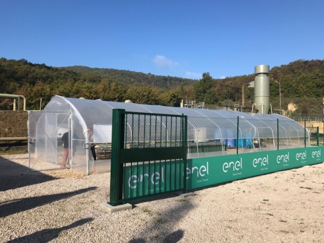 L’attività nasce dall’accordo firmato a gennaio 2017 tra Enel Green Power e Co.Svi.G. per l’attività di sperimentazione sulla risorsa geotermica applicata alla coltivazione di alghe”: le due parti hanno stanziato 100mila euro a testa per la realizzazione dell’impianto pilota di Chiusdino, una innovativa serra in cui viene coltivata alga spirulina utilizzando sia il calore geotermico che la CO2 carbon free, prodotta dal processo di produzione geotermico e sostitutiva di emissioni naturali, utile nel favorire l’attività di coltura delle alghe. L’impianto pilota ha una dimensione di circa 125 mq e, attraverso vasche aperte e fotobioreattori a pannello verticale, produce piccole quantità di alga pari a circa 60 grammi al giorno utile alla sperimentazione.