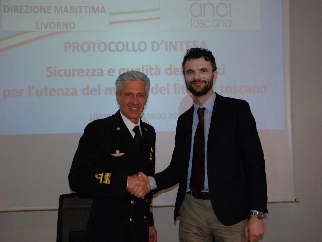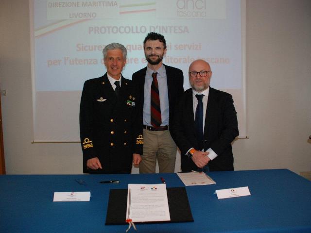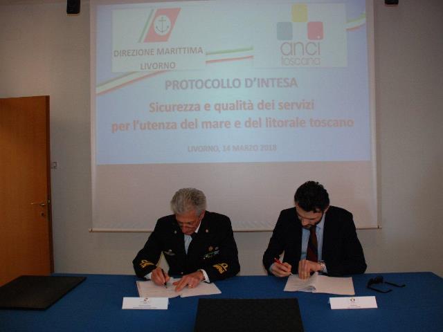 Salvaguardia della vita umana in mare, sicurezza delle attività legate al turismo sulle coste regionali e nelle acque dell’arcipelago, tutela dell’ambiente marino, sono gli obiettivi che da questa mattina accomunano ANCI Toscana e la Direzione marittima di Livorno., grazie al protocollo d’intesa tra Anci Toscana e la Direzione marittima di Livorno. L’atto d’intesa, contenuto in apposito Protocollo è stato sottoscritto a Livorno, presso la sede della Guardia costiera, dall’Ammiraglio Giuseppe Tarzia, Direttore marittimo e comandante della Capitaneria di porto e dal Matteo Biffoni, presidente regionale dell’Associazione e sindaco di Prato, presente il sindaco di Livorno Filippo Nogarin, rappresentante dell'Anci nazionale nella Conferenza nazionale di coordinamento delle Autorità di sistema portuale.