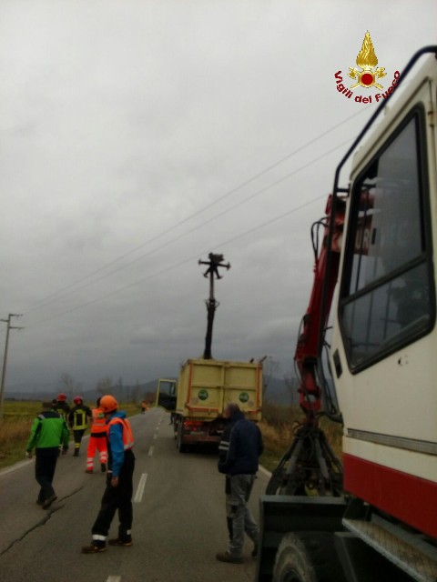 Un camion che stava lavorando con un braccio meccanico, ha urtato inavvertitamente un cavo dell'alta tensione sulla S. P. Castiglionese poco dopo il Centro Quadrupedi. Sul posto sono intervenuti i vigli del fuoco del Comando di Grosseto. Fortunatamente la scarica elettrica non ha investito gli operai che stavano lavorando nelle vicinanze e nemmeno l'autista del mezzo, visto che le gomme del mezzo hanno scaricato a terra la carica elettrica. Visto che il braccio meccanico si trova molto vicino ai cavi, per il momento le operazioni di soccorso sono bloccate in attesa che la linea dell'alta tensione sia disattivata. Attualmente la strada è chiusa al traffico e sul posto c'è anche la Polizia Municipale di Grosseto.