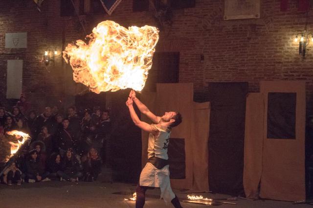 Contemporaneamente lungo i borghi e nelle piazze si esibiranno giullari, musici e trampolieri che coinvolgeranno il pubblico prima delle serie di spettacoli che, tra musica e suggestioni medievali, condurrà fino alla tarda notte.