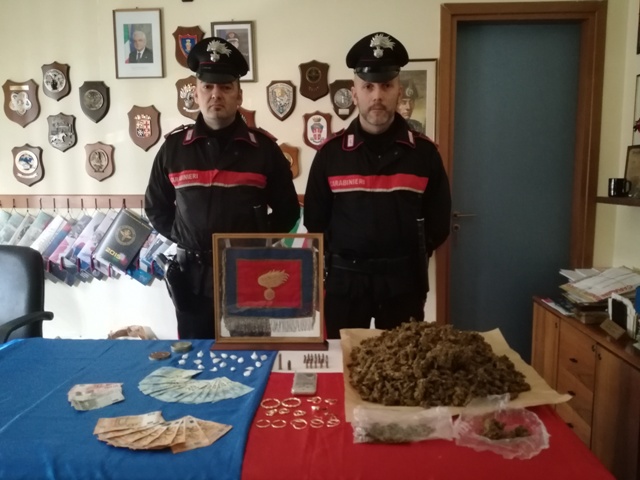 La successiva perquisizione domiciliare ha permesso di trovare 1 kg di marijuana, altro denaro ritenuto provento dell’attività di spaccio e alcune cartucce cal. 22.