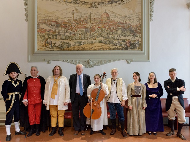 La performance ha avuto inizio sulle scale dell’entrata al palazzo in via Cavour 2, si è poi snodata nella galleria degli Affreschi, in sala Barile, nella sala dei Gigli e quindi in sala Gonfalone. Un ‘percorso lorenese’ dentro il palazzo del Consiglio regionale, dove a beneficio del pubblico sono state ricostruite ‘scene d’interni’ e rappresentati i dialoghi tra Ferdinando III e l’ingegner Vittorio Fossombroni, all’epoca impegnato nelle bonifiche in Toscana per conto del Granduca; del Granduca con Marco Covoni, anziano padrone di casa afflitto dalla mancanza di discendenti e interessato ad adottare il figlio di Arianna Pandolfini, Filippo, colto in sala Barile mentre manifesta alla madre tutta la sua contrarietà. Fino all’incontro del Granduca e di sua moglie, Luisa di Borbone con il giovane Napoleone Bonaparte – avvenuto nella realtà a palazzo Pitti -, all’epoca generale che stava conquistando l’Italia. A concludere la rappresentazione, in sala Gonfalone, le note del violoncello di Ferdinando III, uno Stradivari, protagonista del ‘mistero’ che ha accompagnato la piece e solcato la storia: scomparve, infatti, e non è mai stato ritrovato.
