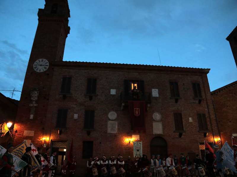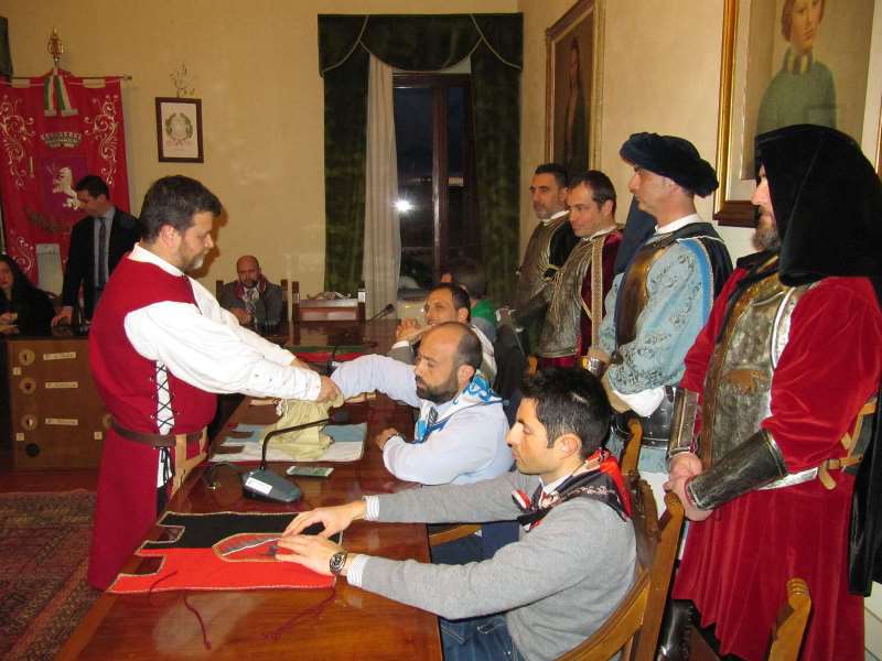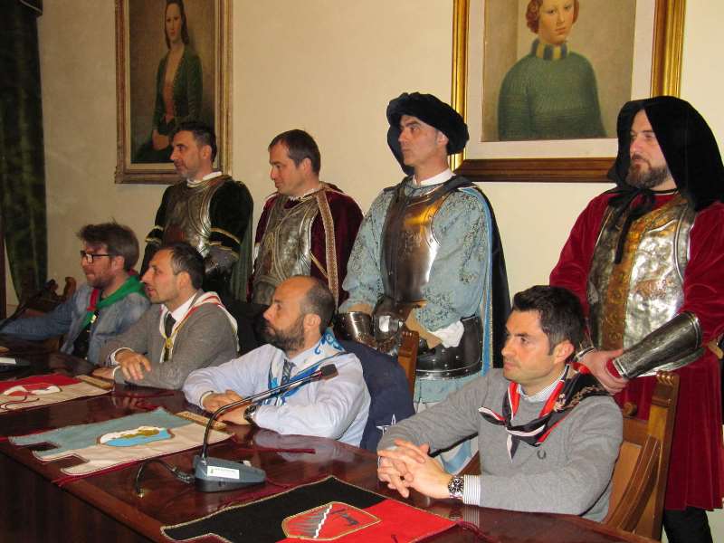 Al termine di una sorta di gimkana tra previsioni meteo altalenanti e condizioni del tempo incerte, il sorteggio si è potuto finalmente fare secondo copione, seguito in piazza da una folta cornice di pubblico che ha ammirato la rievocazione di un episodio storico, l’ingresso in città nel 1358 del condottiero Anichino di Bongardo.