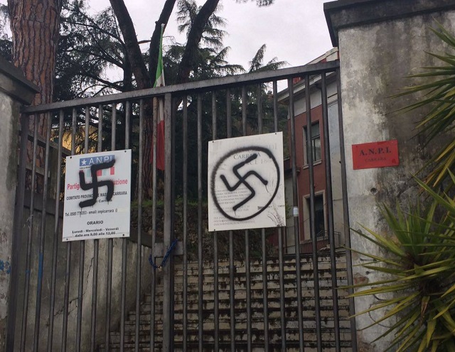 Svastiche sulla facciata della sede di Carrara dell'ANPI. Il gesto è stato commesso nella notte da mani ignote.