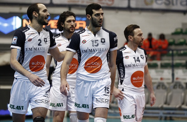Quinto set Fedrizzi inizia assai bene il tie break, un punto break arriva con la murata di Vedovotto su Mochalski. Gli ospiti rispondono con le giocate di Mochalski e Shavrak. La veloce chiusa da Melo vale il 7-7, l’ace di Vedovotto porta al cambio di campo (8-7). Pareggia ancora Mochalski, poi la battuta float di Calonico si dimostra insidiosissima e dà il +1 agli ospiti. Impatta Fedrizzi. Il cambiopalla senese produce un altro punto con Fedrizzi. Dall’altra parte della rete Matej Cernic fa valere la sua esperienza. Van Dijk schiaccia a terra l’11-11. Fedrizzi sbaglia la battuta, però nella successiva pesante azione Vedovotto non trema e pareggia ancora. E’ un finale terribilmente emozionante: la diagonale di Shavrak finisce proprio sulla riga: 12-13. Van Dijk realizza il 13-13. Coach Montagnani chiama time out per parlare con i suoi giocatori. Un favoloso muro di Melo vale il match point: 14-13. Shavrak trova il 14-14. I senesi non riescono poi a concretizzare un’azione di attacco, la battuta di Shavrak è fuori ed è quindi ancora parità, stavolta sul 15-15. Van Dijk mura stupendamente Cernic e tiene la gara ancora in equilibrio (16-16). Mochalski dà un altro match point ai suoi, poi il tocco dolcissimo in pallonetto di Fedrizzi lo annulla. Stavolta Fedrizzi dà il match point alla Emma Villas (18-17), ma non si concretizza. La murata di Piscopo fa rimettere la testa avanti ai laziali in un lunghissimo ed emozionantissimo tie break. Il tocco del muro su schiacciata di Fedrizzi allunga ancora la partita. La murata di Mochalski chiude la sfida (20-22).