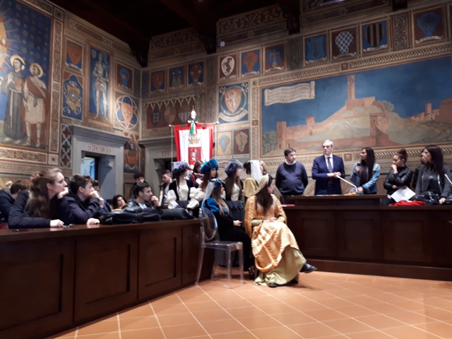 Martedì 13 marzo il programma ha previsto il benvenuto del Dirigente Scolastico, Alessandro Frosini, la visita della scuola e l’incontro presso la Sala Consiliare del Comune di San Miniato con il sindaco Vittorio Gabbanini, il Vice Sindaco Chiara Rossi e l’Assessore al Turismo Giacomo Gozzini, i quali hanno dato un caloroso benvenuto agli ospiti.