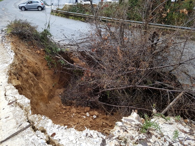 La segnalazione della frana è arrivata intorno alle ore 8.00 di stamani: immediato l’intervento sul posto dei tecnici dell’Ufficio Strade del Comune che hanno accertato la presenza della voragine di circa 8 metri di altezza, interessando un tratto di circa 10 metri, verificatasi sotto il manto stradale che, invece, era rimasto inalterato.