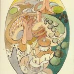 Certo per Baldi la forma ovale era diventato una specie di ossessione, da riempire con eccezionale maestria con le altre forme che gli si potevano presentare, dai paesaggi alle immagini di città, dagli animali ai bellissimi nudi, che si intrecciano in una splendide sinuosità. Tutto nasce da questa specie di placenta primordiale dalla quale ogni cosa ha origine. Una esigenza intima che si fa vivida e che insegue il nuovo e l’inedito, privilegiando la varietà del ritmo, l’armonia del tono, il sottofondo poetico e musicale di un segno fluido e libero, coglie il dato oggettivo e si dilata in dimensione futura.