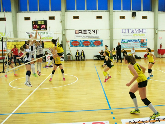 Il primo set, benché iniziato con due punti di svantaggio, ha visto le giallonere imporsi rapidamente aumentando il distacco con più di un’occasione per chiudere che però è stata compromessa da qualche difficoltà in difesa nelle retrovie. Il muro potente e il gioco di continuo attacco, soprattutto del capitano Lodivica Torrini in splendida forma, hanno fatto la differenza permettendo alle nostre di aggiudicarsi la vittoria per 25-23.