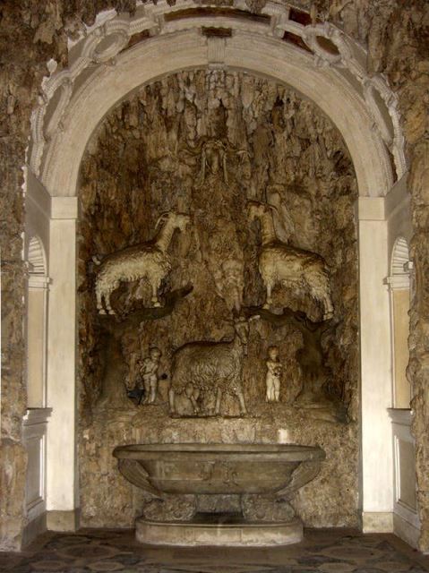 In un angolo appartato del giardino l’edificio imita un ambiente sotterraneo e naturale ma è invece posto fuori terra e completamente costruito. Cosimo I è celebrato attraverso l’iconografia imperniata sul segno zodiacale del Capricorno, scelto dal Duca, poi Granduca, a rappresentarlo in quanto simbolo di chi ama raggiungere con lentezza e caparbietà (“festina lente”) le vette più ambite. Cosimo voleva così collegarsi idealmente con i potenti del suo presente e del passato che erano nati sotto quella stella come l’imperatore Carlo V o Cesare Augusto, fondatore dell'impero romano.