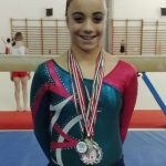 Valentina Ingrassia arriva 1^ nella gara della giornata e 2^ nel Campionato Regionale, campionessa a volteggio e parallele e vicecampionessa al corpo libero nella categoria 4^ Senior.