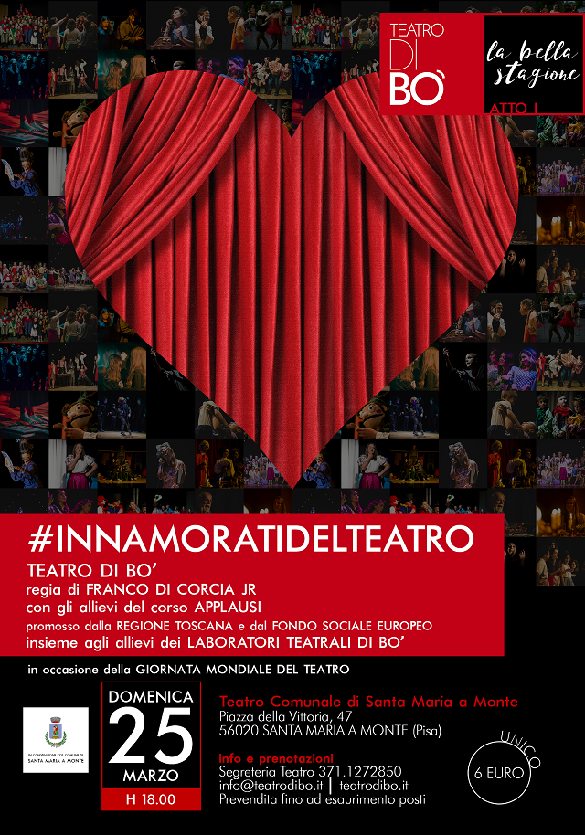 Andrà in scena Domenica 25 Marzo alle ore 18:00 al Teatro Comunale di Santa Maria a Monte, all’interno del Cartellone Artistico “La Bella Stagione Atto I” del Teatro Di Bo’, lo spettacolo #INNAMORATI DEL TEATRO.