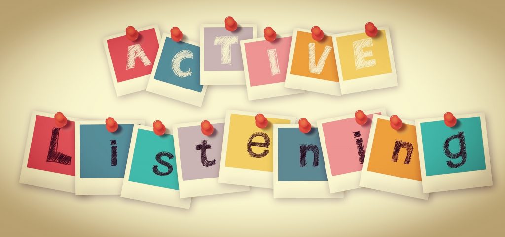 4)l’ascolto attivo è l’ultimo step durante il quale chi ascolta ripropone il contenuto del messaggio condiviso dall’altro con parole diverse. In questa fase però non entrano in gioco solo le parole, ma anche le emozioni e i sentimenti.