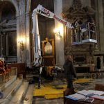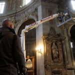 Un ‘ragno’, ovvero uno speciale carrello mobile munito di una piattaforma elevatrice, sta lavorando in questi giorni all’interno della Basilica della Santissima Annunziata per una ricognizione e verifica degli apparati architettonici e decorativi interni nell’ambito del programma di manutenzione preventiva e programmata avviato dall’Amministrazione comunale sul patrimonio monumentale cittadino. E’ lo stesso macchinario utilizzato qualche settimana fa nella chiesa del Carmine.