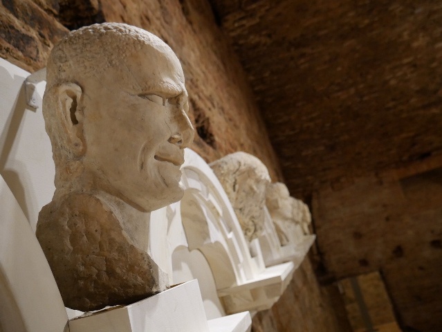 Per la prima volta saranno esposte al pubblico otto grandi sculture raffiguranti delle teste maschili e femminili, in origine collocate nella parte alta della facciata del battistero senese, incompiuta rispetto al progetto originario. Le protomi sono state estratte dalla facciata per poterne garantire la conservazione e sono state sostituite in loco da calchi: la secolare esposizione delle sculture agli agenti atmosferici e all’inquinamento ha infatti provocato una generale corrosione degli strati superficiali del marmo e, in alcuni casi, delle fessurazioni e la forte alterazione dell’intaglio lapideo. Dopo un attento restauro, le sculture sono presentate al pubblico con un elaborato allestimento museografico, che evoca la loro funzione e collocazione originarie.