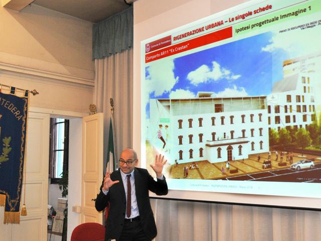 Questa mattina il Sindaco Simone Millozzi ha presentato alla stampa il piano urbanistico di rigenerazione urbana che sarà sottoposto Martedì 27 Marzo alla approvazione del Consiglio Comunale. Nella presentazione pubblica il Sindaco si è soffermato su alcune delle schede più significative per la città mostrando in bozza alcune ipotesi progettuali proposte dai soggetti titolati e ritenute meritevoli di attenzione da parte dell’Amministrazione.