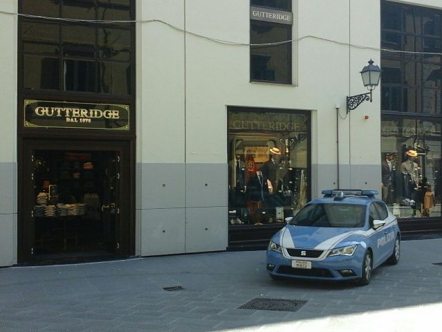 Gli uomini della volante e del reparto prevenzione crimine di Firenze, già presente in zona corso Italia, alle 19 di ieri sera, ha assistito alla fuga di un ladro incappucciato con vestiti rubati dal negozio Gutteridge.