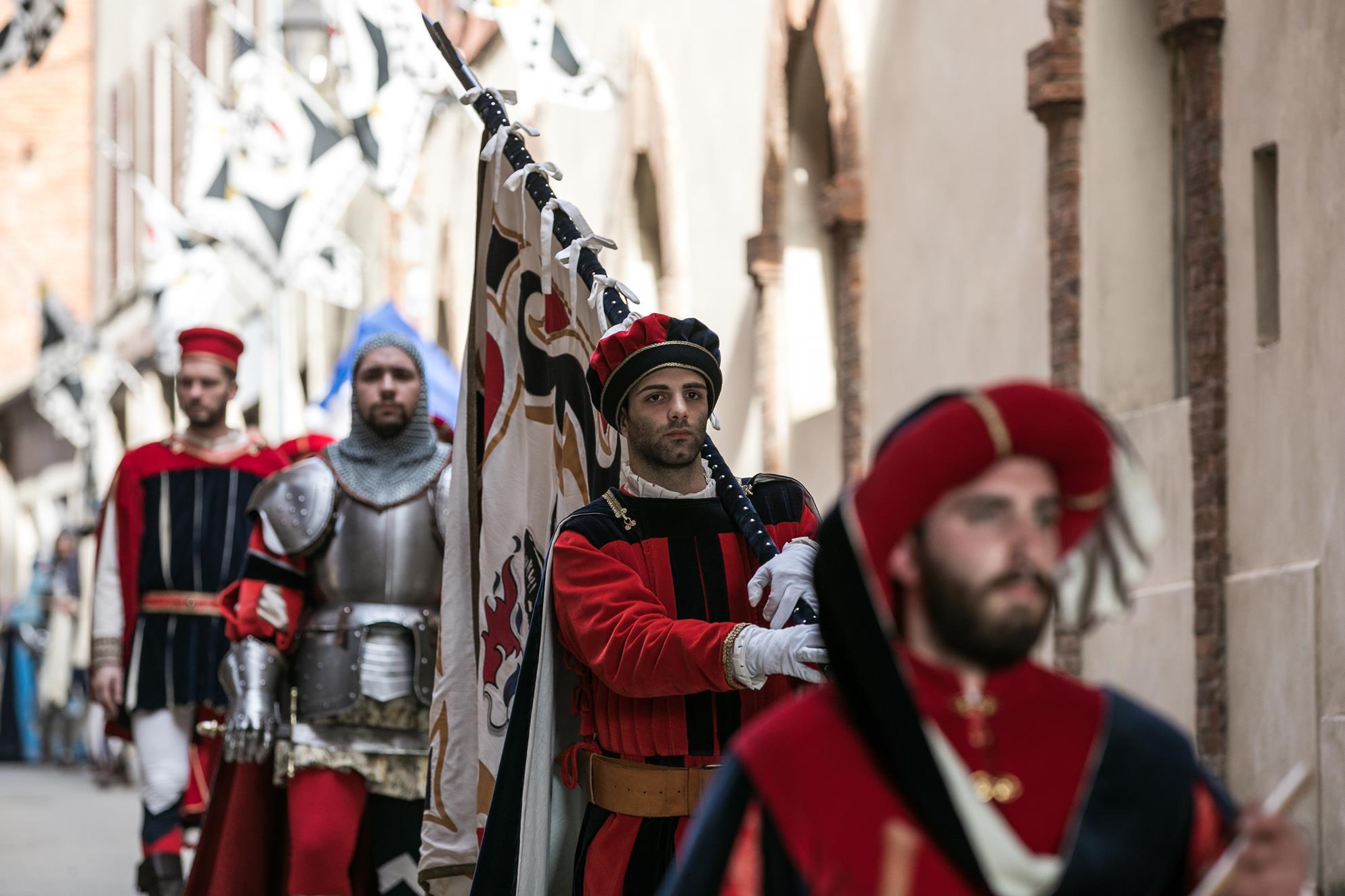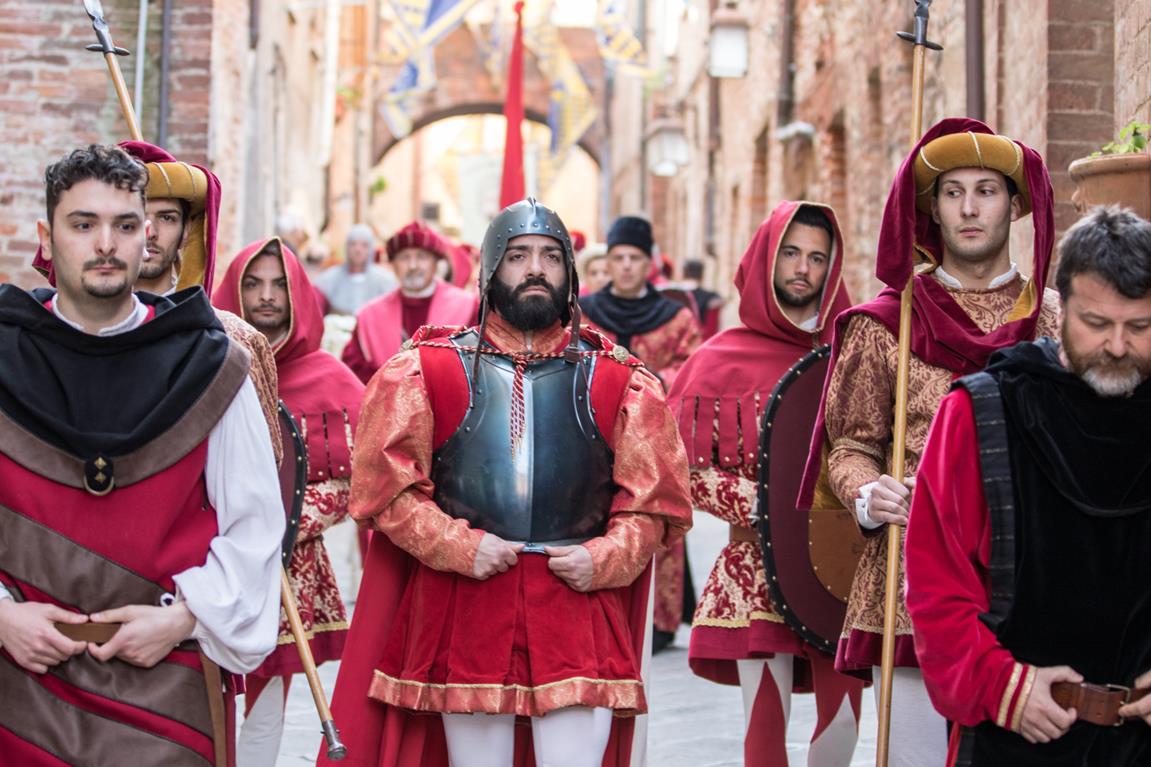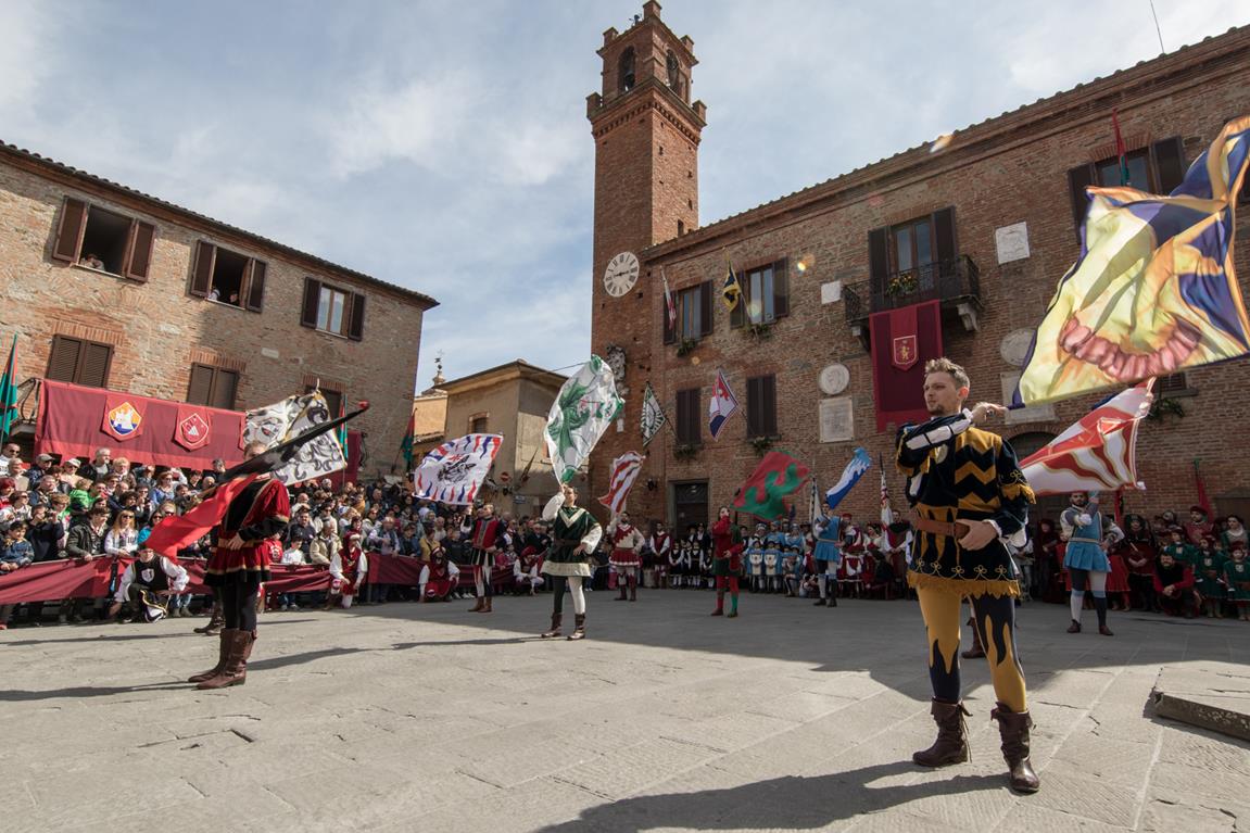 Otto sono le contrade che si sfidano per conquistare il panno, quest’anno dipinto dall’artista locale Riccardo Carrai, quattro ben incastonate nel centro storico, in corrispondenza delle porte di accesso alla cittadella medievale (Porta a Pago, Porta a Sole, Porta Gavina e Porta Nova) e quattro create in seguito all’ampliamento del centro abitato (Cavone, Le Fonti, Refenero e Stazione); tutte fanno riferimento nelle tradizioni e nei costumi ad un tratto di storia di circa 200 anni, tra il 1358 ed il 1544, in cui Torrita fu teatro di fatti di rilievo, legati soprattutto alle guerre tra Siena, Firenze e Perugia per la conquista di questo prezioso avamposto sulla Val di Chiana.