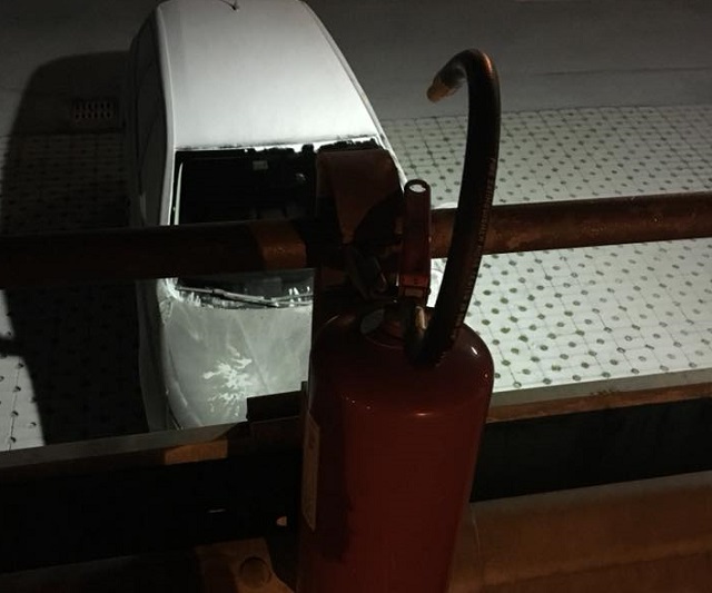 "Questo il regalo che ho trovato stanotte al parcheggio della stazione. Mi hanno scaricato un estintore sulla macchina...meglio lasciarla in divieto di sosta in bella vista invece che in un parcheggio a pagamento", questo il commento su facebook dell'automobilista che lamenta anche la scarsa sicurezza dell'area di sosta nonostante sia a pagamento.