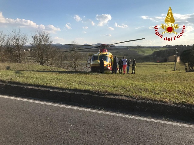I vigili del fuoco di Montepulciano, sono intervenuti intorno alle ore 17 in località Botteghino per un incidente stradale che ha coinvolto un'autovettura finita fuori strada. Due le persone estratte dalla macchina che sono state affidate alle cure dei sanitari del 118 intervenuto anche con Pegaso. Al momento non sono chiare le loro condizioni, ma sarebbero gravi.