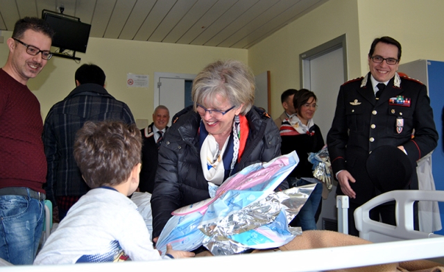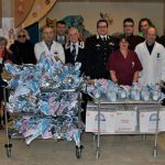Una mattinata speciale nel Dipartimento Materno Infantile e nella Neuropsichiatria Infantile del policlinico Santa Maria alle Scotte, grazie alla visita dell’Arma dei Carabinieri e dell’Associazione Nazionale Carabinieri che hanno portato uova di Pasqua, regali e sorrisi ai piccoli pazienti e alle rispettive famiglie, insieme ad un reciproco scambio di auguri con i professionisti dell’Azienda ospedaliero-universitaria Senese. Presente all’evento il comandante provinciale dell’Arma dei Carabinieri, colonnello Stefano di Pace e il presidente dell’Associazione Nazionale Carabinieri, sezione di Castellina e Radda in Chianti, vice brigadiere in congedo Beniamino De Gaetano. Ha partecipato inoltre Paolo Brigliadoro, dell’Associazione Italiana per la Lotta al Neuroblastoma, nata presso l’Ospedale pediatrico Gaslini di Genova a sostegno soprattutto di neonati e bambini al di sotto dei 10 anni che vengono colpiti da questo tumore che ha origine dalle cellule del sistema nervoso autonomo. Le uova regalate sono state acquistate dai Carabinieri e dall’Associazione Nazionale Carabinieri di Castellina e Radda in Chianti proprio dall’Associazione Italiana per la Lotta al Neuroblastoma. A fare gli onori di casa il direttore sanitario dell’Azienda ospedaliero-universitaria Senese, Roberto Gusinu, insieme al direttore del Dipartimento Materno-Infantile, professor Mario Messina, e a tutti i professionisti del Dipartimento e della Neuropsichiatria Infantile.