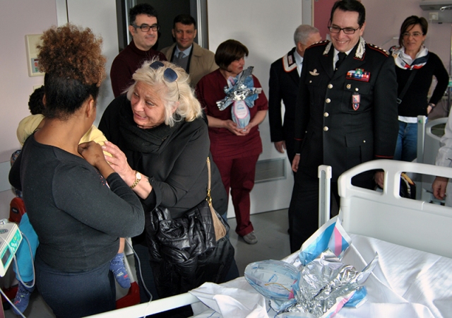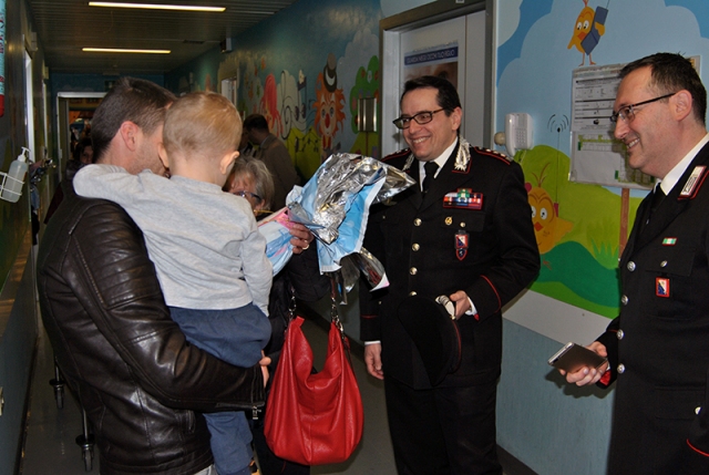 Una mattinata speciale nel Dipartimento Materno Infantile e nella Neuropsichiatria Infantile del policlinico Santa Maria alle Scotte, grazie alla visita dell’Arma dei Carabinieri e dell’Associazione Nazionale Carabinieri che hanno portato uova di Pasqua, regali e sorrisi ai piccoli pazienti e alle rispettive famiglie, insieme ad un reciproco scambio di auguri con i professionisti dell’Azienda ospedaliero-universitaria Senese. Presente all’evento il comandante provinciale dell’Arma dei Carabinieri, colonnello Stefano di Pace e il presidente dell’Associazione Nazionale Carabinieri, sezione di Castellina e Radda in Chianti, vice brigadiere in congedo Beniamino De Gaetano. Ha partecipato inoltre Paolo Brigliadoro, dell’Associazione Italiana per la Lotta al Neuroblastoma, nata presso l’Ospedale pediatrico Gaslini di Genova a sostegno soprattutto di neonati e bambini al di sotto dei 10 anni che vengono colpiti da questo tumore che ha origine dalle cellule del sistema nervoso autonomo. Le uova regalate sono state acquistate dai Carabinieri e dall’Associazione Nazionale Carabinieri di Castellina e Radda in Chianti proprio dall’Associazione Italiana per la Lotta al Neuroblastoma. A fare gli onori di casa il direttore sanitario dell’Azienda ospedaliero-universitaria Senese, Roberto Gusinu, insieme al direttore del Dipartimento Materno-Infantile, professor Mario Messina, e a tutti i professionisti del Dipartimento e della Neuropsichiatria Infantile.