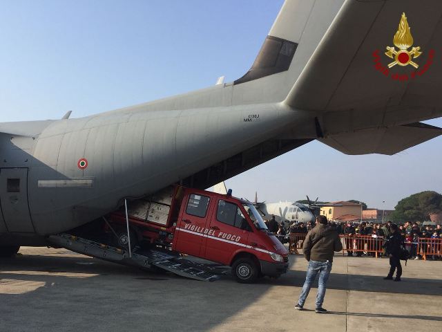 La procedura prevede la possibilità di trasportare 40 unità VVF (questo è il numero del personale che fa parte di un Team USAR tra cui unità cinofile) con al seguito l’attrezzatura personale, 45 casse aviotrasportabili con all’interno tutto il materiale necessario per le operazioni di soccorso e la logistica oltre a un mezzo QUAD con un carrello che serve per la movimentazione del personale e delle attrezzature in tutte quelle zone dove la viabilità risulta compromessa o non permette l’impiego di veicoli ordinari.