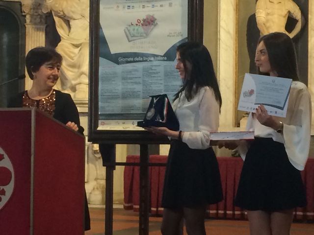 Il Liceo "Eugenio Montale" di Pontedera, per conto del Ministero dell'Istruzione, per il terzo anno sulle otto edizioni disputate ha organizzato la fase finale delle Olimpiadi di Italiano e le giornate della lingua Italiana. Uno staff di studentesse del Liceo delle Scienze Umane ha avuto modo di collaborare in tutte le fasi della preparazione e della gestione dell'evento: accoglienza degli ospiti, prenotazioni, premiazioni, visite della città di Firenze. Un'esperienza di alternanza scuola/lavoro sicuramente interessante e un modo anche per vivere tre giornate in contatto con la Storia, l'Arte e con le radici della Lingua Italiana. Nella suggestiva cornice del salone dei Cinquecento a Palazzo Vecchio a Firenze le ragazze del Liceo Montale sono state ringraziate dal Capo Dipartimento del Ministero Dott.ssa Carmela Palumbo e dagli ideatori delle Olimpiadi di Italiano Paolo Corbucci ed Ugo Cardinale.
