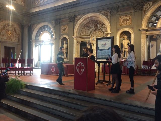 Il Liceo "Eugenio Montale" di Pontedera, per conto del Ministero dell'Istruzione, per il terzo anno sulle otto edizioni disputate ha organizzato la fase finale delle Olimpiadi di Italiano e le giornate della lingua Italiana. Uno staff di studentesse del Liceo delle Scienze Umane ha avuto modo di collaborare in tutte le fasi della preparazione e della gestione dell'evento: accoglienza degli ospiti, prenotazioni, premiazioni, visite della città di Firenze. Un'esperienza di alternanza scuola/lavoro sicuramente interessante e un modo anche per vivere tre giornate in contatto con la Storia, l'Arte e con le radici della Lingua Italiana. Nella suggestiva cornice del salone dei Cinquecento a Palazzo Vecchio a Firenze le ragazze del Liceo Montale sono state ringraziate dal Capo Dipartimento del Ministero Dott.ssa Carmela Palumbo e dagli ideatori delle Olimpiadi di Italiano Paolo Corbucci ed Ugo Cardinale.