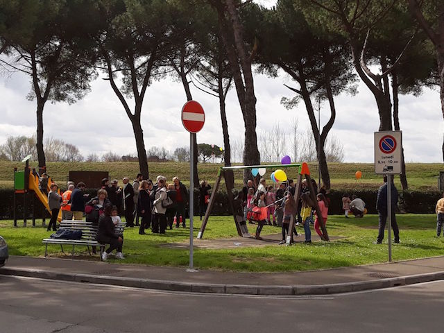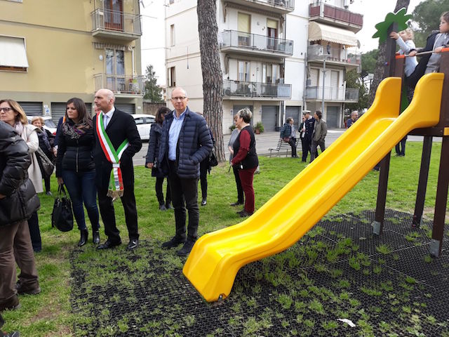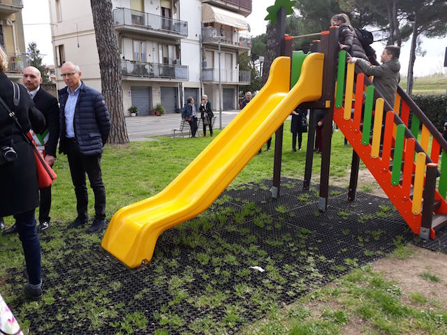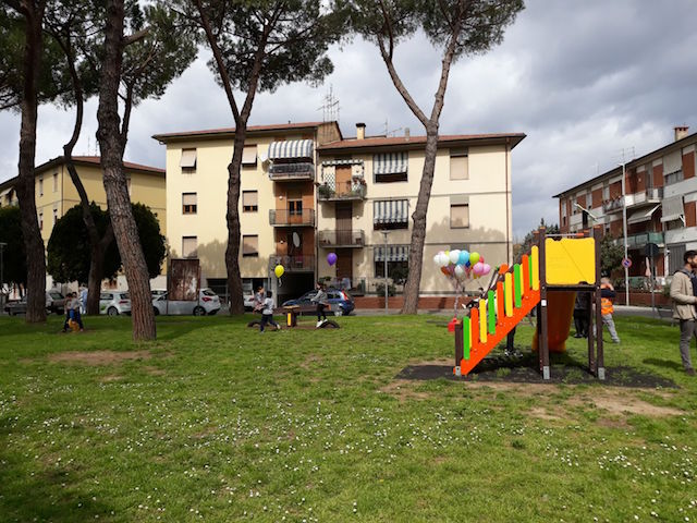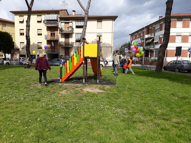 Il parco giochi, invece, è stato realizzato a settembre 2017 con la potatura e manutenzione dei pini presenti e l’installazione di cestini e nuovi arredi in plastica riciclata: un bilico, un castello con scivolo, un’altalena e un gioco a molla. L'intervento è costato 20mila euro e la manutenzione sarà gestita da un gruppo di residenti all'interno del progetto di adozione delle aree verdi: i volontari di Castelfranco Bene Comune Luigi Merola e Daniele Pardossi si occuperanno dello sfalcio dell'erba e di altri aspetti, in cambio di una copertura assicurativa e di uno sconto sulla Tari.