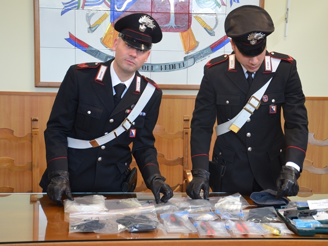 All’interno di quel contenitore i Militari hanno trovato la pistola che cercavano, una scacciacani nera priva di tappo rosso ma totalmente simile ad una pistola vera, completa di 48 chiassosissimi colpi, la sacca nera tante volte osservata nei video registrati dalle banche, una collezione di porzioni di collant da donna e un berrettino da pescatore a falde larghe, utili per futuri travisamenti.