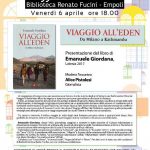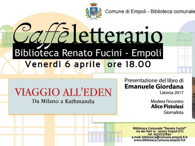 Torna un nuovo appuntamento con il “Caffè letterario” della biblioteca comunale Renato Fucini di Empoli. Venerdì 6 aprile 2018 alle 18 ospite dell’iniziativa l’autore e grande viaggiatore Emanuele Giordana che presenterà il suo libro intitolato “Viaggio all’Eden. da Milano a Kathmandu” edizione Laterza, 2017.