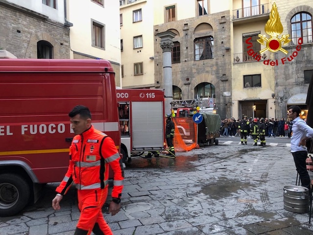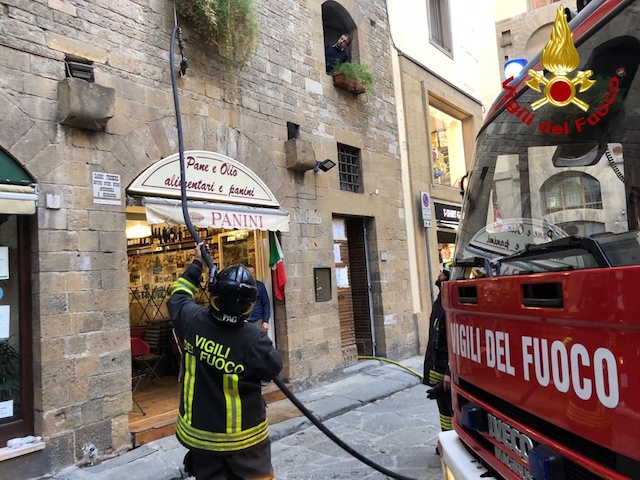 I vigili del fuoco di Firenze, sono intervenuti in Piazza Santa Felicita, per l'incendio della canna fumaria e l'impianto di estrazione dei fumi del ristorante Santa Felicita. Sul posto sono intervenute due squadre una della sede centrale ed una dal distaccamento di Firenze-ovest per un totale di 14 unità e 4 veicoli antincendio. Sul posto presenti vigili urbani e 118. Non si è registrato nessun danno a cose o persone e l'incendio è stato reso sotto controllo dalle operazioni di spegnimento.