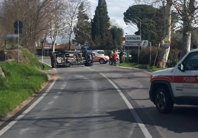 Incidente sulla via Senese Romana a Petrazzi, tra Castelfiorentino e Certaldo, avvenuto questo pomeriggio. E' successo alle 14:15 del 31 marzo, quando un'auto si è ribaltata sulla carreggiata. Sul posto sono subito la polizia municipale dell'Unione dei Comuni insieme a un'automedica e ai vigili del fuoco. La strada è stata chiusa temporaneamente per permettere la rimozione del veicolo e un uomo alla guida, 48 anni, è stato trasportato al pronto soccorso dell'ospedale San Giuseppe di Empoli in codice verde. Successivamente, dopo le operazioni, la carreggiata è stata nuovamente aperta al traffico.