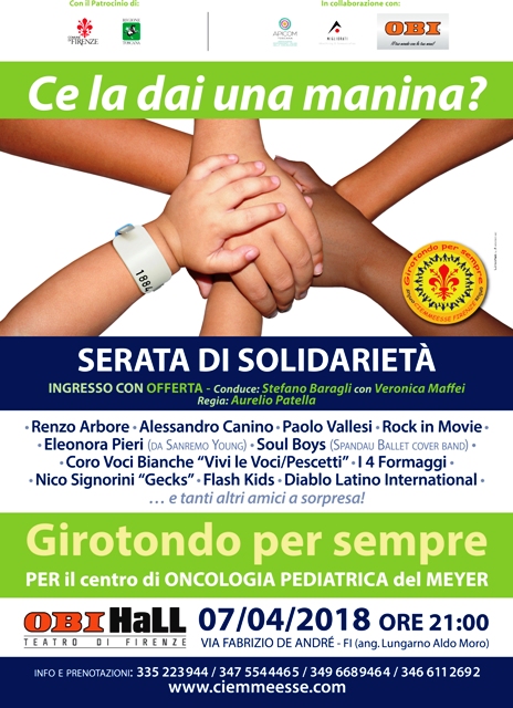 Un evento che vede gli amici del Girotondo che saliranno sul palco unirsi al pubblico che, sempre più numeroso, segue il grande spettacolo. Un impegno che richiede un anno di lavoro, di organizzazione, di incroci di date, di ricerca sponsor, per regalare una serata che lasci nel cuore soprattutto gioia e serenità con la consapevolezza di aver contribuito, divertendosi, alla realizzazione dei grandi progetti portati avanti dall’Associazione Ciemmeesse Firenze.