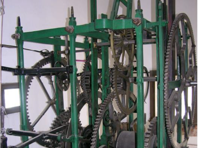 L’orologio è di dimensioni straordinarie, uno dei più grandi al mondo, circa due metri di lunghezza e larghezza per due metri e mezzo di altezza composto da due parti: la prima treno delle ruote per il tempo con la particolarità di essere dotato di un’unica lancetta che indica le ore, la seconda treno delle ruote per la suoneria collegata alla campana del Leone (o dei rintocchi) e alla campana del Mezzogiorno. La campana del Mezzogiorno suona solo una volta nella giornata, mentre i rintocchi corrispondenti alle ore vengono scanditi dalla campana del Leone, e ripetuti dopo 5 minuti. I lavori consteranno in un intervento di manutenzione, pulitura ed oliatura delle parti meccaniche per garantire il mantenimento e il buon funzionamento. Inoltre sarà resa fruibile a cittadini e visitatori la stanza attigua all’orologio, ripristinando la completa agibilità degli ambienti originari. Sarà così possibile osservare da vicino gli antichi ingranaggi tutt’oggi funzionanti: all’interno sono collocati infatti i diversi apparecchi di comando delle campane e dell’orologio con servomeccanismo a funzionamento digitale che pilota la lancetta posta in facciata, mentre tramite una scala di legno si sale fino alla cella che ospita il meccanismo storico vero e proprio.