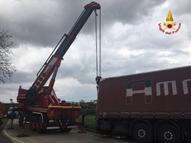 I vigili del fuoco di Pistoia sono intervenuti intorno alle ore 13.45 a Ferruccia (Quarrata). Un camion è finito fuori strada per motivi ancora da chiarire e ha ostruito la viabilità. Non si segnalano danni a persone. La gru dei vigili del fuoco ha tirato su il mezzo pesante e adesso la viabilità è tornata regolare.