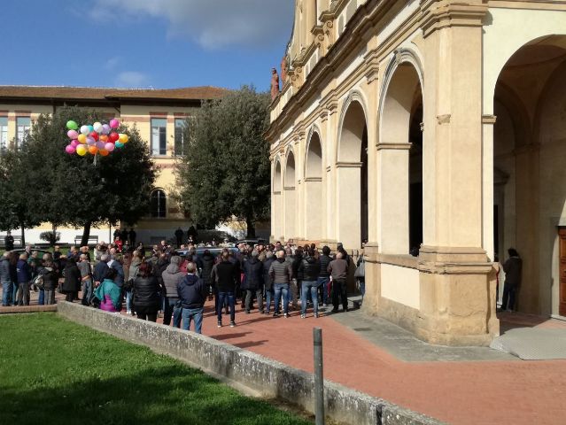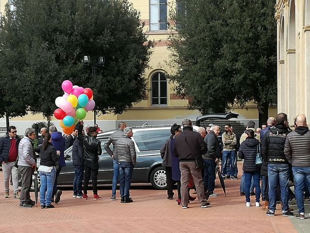 Al suono delle campane, molti fiori, tra cui quelli del Team Stefan, e un volo di palloncini hanno accolto l'applauso che ha accompagnato l'addio a Ilaria Rinaldi.