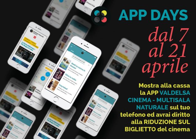 Il grande cinema è ancora più vicino e a portata di smartphone grazie alla nuova app “Multisala Naturale Valdelsa”, scaricabile da App Store e Google Play. Per festeggiarne il lancio dal 7 al 21 aprile arrivano le “settimane di ValdelsaCinema”. Due settimane in cui sarà riservato il biglietto ridotto a tutti coloro che alla cassa mostreranno di aver scaricato la nuova app “Multisala Naturale Valdelsa”, un modo facile per avere sempre “tutti i film vicino a te”.