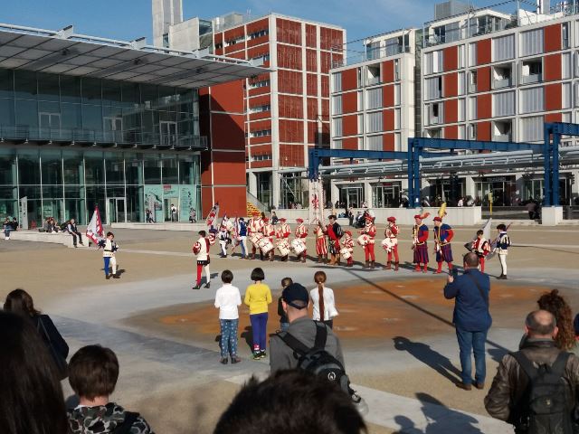 Un gemellaggio nato dopo il terremoto del 2009 in Abruzzo, grazie ai contatti diretti dei docenti di musica tra le scuole secondarie di I grado a indirizzo musicale Mazzini Patini de L’Aquila e Rodari di Scandicci, e che prosegue ancora oggi. Scandicci ospita infatti quest’anno più di 70 alunni provenienti da L’Aquila; prima di incontrare le famiglie che li ospitano, gli studenti sono stati accolti nel pomeriggio di venerdì 6 aprile 2018 dalla dirigenza scolastica, dai docenti, dagli alunni, dal Sindaco Sandro Fallani e dall’assessora alla Pubblica istruzione Diye Ndiaye in Municipio, per poi assistere in piazza Resistenza all’esibizione dei Bandierai degli Uffizi. Sabato 6 la visita a Firenze e il pranzo realizzato grazie alla collaborazione dei genitori. Domenica 8 aprile alle 11 l’esibizione delle scuole in un concerto al Teatro Aurora di Scandicci.