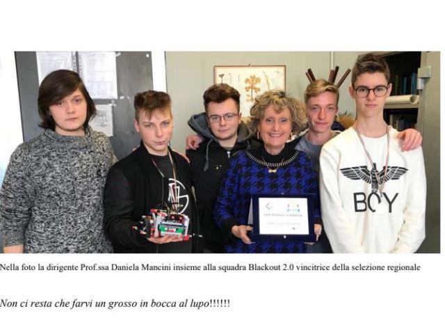 I robot, seguendo una traccia sul terreno costituita da una striscia nera, e muovendosi all’interno di stanze, dovranno individuare le vittime, rappresentate da palline, raccoglierle e depositarle dentro un contenitore definito Zona di Salvataggio. I risultati ottenuti sono frutto sia di un progetto didattico curriculare che ha visto la nascita di una curvatura robotica nell'indirizzo di Informatica, sia della partecipazione al progetto Erasmus Plus R.O.S.E. (in collaborazione con la Facoltà di Ingegneria di Firenze, USR Toscana) avente la finalità di avvicinare le studentesse alle discipline tecnico scientifiche. Un grandissimo ringraziamento, da parte della Dirigente Daniela Mancini, va a tutti i docenti del dipartimento di informatica che hanno collaborato alla preparazione dei ragazzi e allo svolgimento dell'evento.