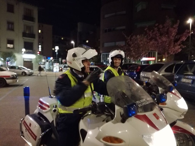 Controlli ieri sera in centro da parte del reparto motociclisti e del reparto tecnologie di supporto della Polizia Municipale. Gli agenti hanno allestito un posto di controllo in San Jacopino ed hanno sottoposto ad etilometro 19 automobilisti, tutti risultati negativi. Durante i controlli però sono state constatate sette violazioni a cinque conducenti per un totale di 1415 euro di sanzioni, 9 punti decurtati, un veicolo sequestrato e una patente ritirata. Un uomo alla guida di uno scooter è stato sanzionato perché circolava sul marciapiede e nel senso opposto di marcia  a quello consentito (in tutto 204 euro di multa e  4 punti decurtati dalla patente). Il conducente di un motociclo è stato trovato con l’assicurazione  scaduta a giugno 2017  ed è stato sanzionato con 849 euro di multa  e sequestro del mezzo ai fini della confisca. Un motociclo di cilindrata 125 è stato fermato e sanzionato perché aveva non aveva il silenziatore obbligatorio alla marmitta e aveva lo specchietto sinistro piegato: per lui due sanzioni di 41 euro per la marmitta e 85 euro per lo specchietto. Fermata dagli agenti un’utilitaria con alla guida un uomo di nazionalità marocchina che, pur essendo residente in provincia da oltre un anno, non aveva convertito la patente del suo paese: per lui è scattato un verbale da 155 euro ed il ritiro della sua patente. Infine fermata una ragazza alla guida della propria utilitaria che, pur di non indossare la cintura di sicurezza  per evitare il fastidioso avviso acustico dell’auto, aveva allacciato la cintura di sicurezza passandolo dietro la schiena. Per lei verbale da 81 euro e 5 punti decurtati dalla patente (se nell’arco del biennio verrà sanzionata sempre in materia di cintura di sicurezza le verrà sospesa la patente).