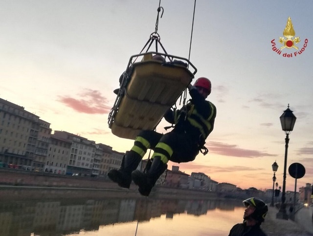 Un ragazzo di 25 anni, pisano, è caduto dalla spalletta sul Lungarno Galilei finendo sul marciapiede in cemento intorno alle ore 6 per cause ancora da accertare. Sul posto sono intervenuti i vigili del fuoco di Pisa che con tecniche speleo alpinistiche fluviali e l’autoscala ha raggiunto il ragazzo lo hanno stabilizzato e portato sulla sede stradale dove è stato preso in consegna dal personale 118 che lo ha condotto in ospedale. Impegnati 3 automezzi e 7 unità.
