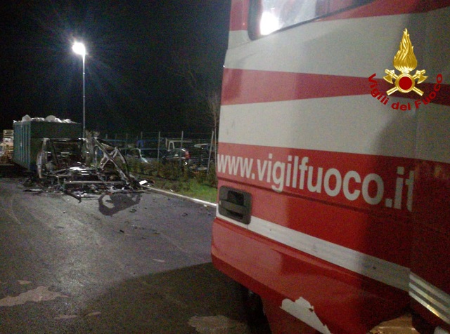 I vigili del fuoco di Siena e del distaccamento di Montalcino sono intervenuti intorno alle ore 23.05, nella zona industriale di Isola d'Arbia, per l'incendio di un camper che è andato completamente distrutto. L'incendio ha coinvolto anche il portone d'ingresso di un capannone industriale e l'opera delle squadre, intervenute con 4 mezzi e 12 unità, è valsa a scongiurare che l'incendio si estendesse anche al resto del fabbricato. Sul posto anche la Polizia.