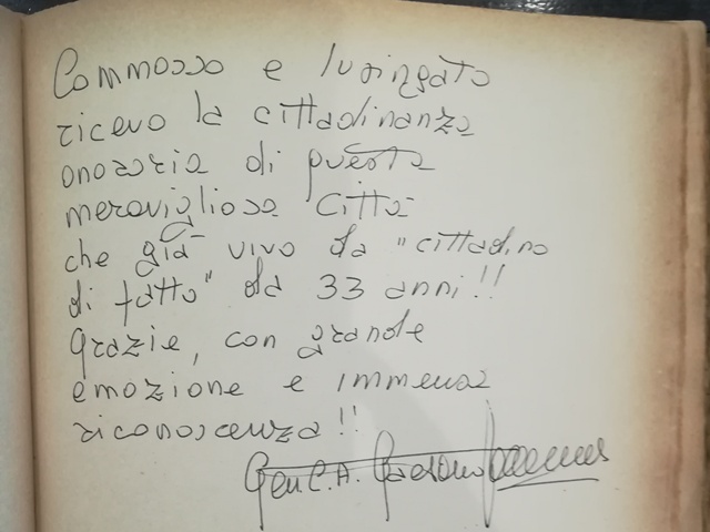 Ovviamente grato l'Alto Ufficiale, che ha ringraziato il sindaco a nome della città per il riconoscimento, nella quale ha ancora casa e coltiva ottimi rapporti di amicizia a seguito del suo rapporto professionale nato oltre 30 anni fa.