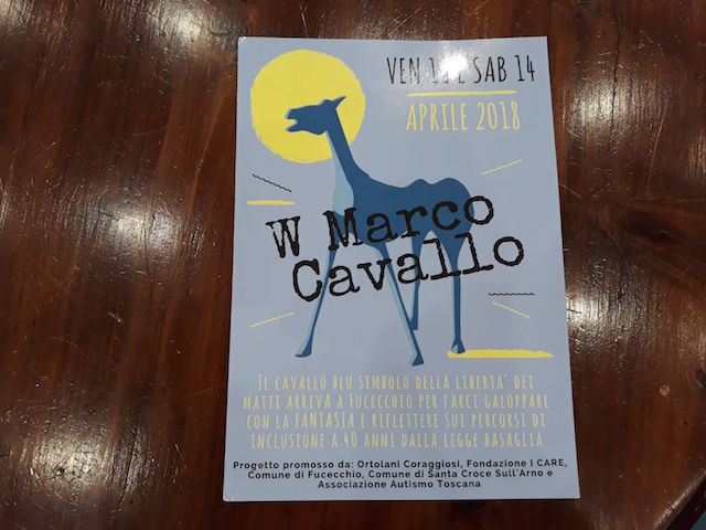 Una lumaca bendata in groppa a un cavallo blu arriva a Fucecchio come simbolo di libertà. A quaranta anni dalla Legge Basaglia, l'iconico Marco Cavallo sarà protagonista di due giornate di formazione e eventi promossi dagli Ortolani Coraggiosi di Cooperativa Sinergic@, in collaborazione con Fondazione I Care, Associazione Autismo Toscana e i comuni di Fucecchio e Santa Croce sull'Arno.