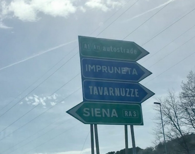 Oggi i segnali non danno indicazioni generiche agli automobilisti, ma indirizzano verso Tavarnuzze e Impruneta.